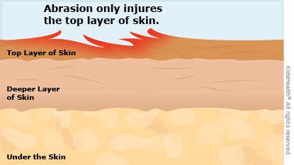 An abrasion is a scrape of the top layer of skin. Most abrasions can be treated at home. They usually heal without leaving a scar.