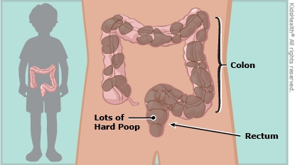 Constipation means having fewer bowel movements (poops) than usual, or having dry, hard, or difficult-to-pass poops. "Chronic" constipation means your child has been constipated for a long time, and the poop filled up and stretched out parts of the intestines. This makes it hard for the intestines to work normally. Treatment begins with "cleaning out" the intestines and starting medicines to help poop pass easily.