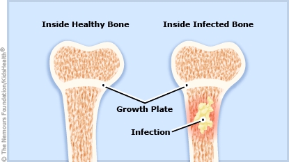 Osteomyelitis (ah-stee-oh-my-eh-LIE-tis) is the medical term for a bone infection. It happens when germs, usually bacteria, get in the bone. Several weeks of antibiotic treatment usually helps a bone infection heal. With treatment and close follow-up, most kids with osteomyelitis recover fully.