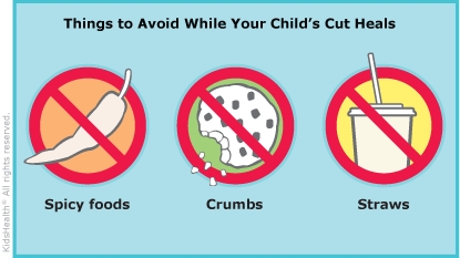 Most tongue cuts heal quickly. The health care provider checked your child's tongue, examined the teeth, and decided that stitches weren't needed. Small changes in the diet can make your child more comfortable while the tongue heals.