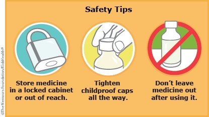- Keep all medicines (even those you can buy without a prescription) in a locked cabinet, out of the reach of children.
