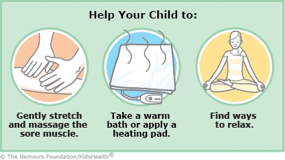 - If your child's muscle is sore from the cramping, you can try: