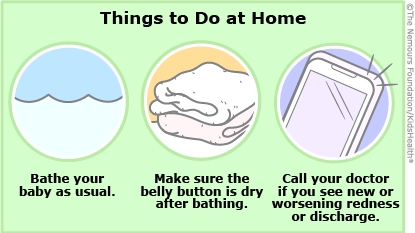 Sometimes a small lump develops at the bottom of the belly button — this is called an umbilical granuloma. It can be seen once the stump falls off. It is pink and is usually smaller than a peanut (about ¼–½ inch). Sometimes the umbilical granuloma will have a stem or stalk (like a lollipop on a stick) that attaches it to the umbilical stump.