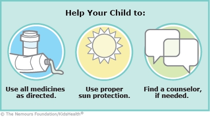 Protect the skin from the sun (being out in the sun can make the patches of vitiligo show up more and can increase your child's risk of skin cancer). Your child should:
