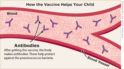 How does the pneumococcal vaccine work? After getting the vaccine, the body makes antibodies against pneumococcal germs. Antibodies are special proteins that lock on to germs to fight infections. If the pneumococcal germ gets into the body again, the antibodies recognize it and fight off the infection before it makes the person sick.