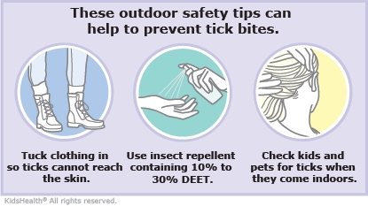 Signs of RMSF usually begin within 2 days to 2 weeks of a tick bite. Often, a key sign is a rash that begins on the wrists, forearms, and ankles, and sometimes on the palms and soles. Other signs may include fever, chills, muscle aches, vomiting, red eyes, headache, belly pain, and nausea.
