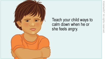 Teach ways to calm down such as breathing deeply, taking a walk, counting to 10, or playing music.