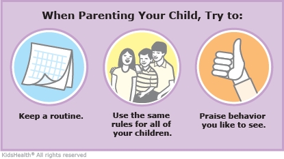 Keep to a routine. Try to stick to the same daily and weekly schedules, including meals, sleep, chores, and playtime. Routines help kids know what to expect. Also, make sure to enjoy time with your child. Sing, dance, and play together.
