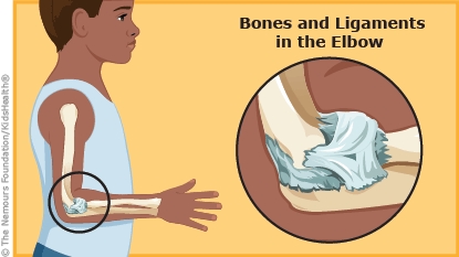 A sprain happens when a ligament stretches or tears. Ligaments are stretchy bands that connect bones to each other. An elbow sprain usually happens when a child falls on an outstretched arm, or when the elbow gets twisted or pulled.