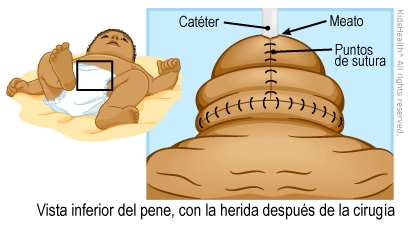 El hipospadias es un defecto congénito en el cual el conducto (uretra) que transporta la orina (pis) hacia el exterior del cuerpo no llega hasta la punta del pene. Por el contrario, la abertura de la uretra (el meato) se encuentra en la parte inferior del pene. Es posible que, además, el pene esté curvado. Su hijo se sometió a una cirugía para hacer que la uretra vaya a una nueva abertura en la punta del pene. Es posible que el cirujano también haya enderezado el pene, si era necesario. Ahora, su hijo está listo para ir a casa. Siga estas instrucciones para ayudarlo a curarse.
