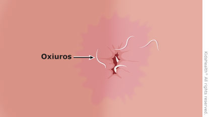 Los oxiuros son gusanos muy pequeños que pueden causar una infección en los intestinos. Los gusanos salen a través del ano (el orificio por donde salen las heces) y ponen allí sus huevos. Esto puede causar comezón y malestar en la zona anal, especialmente durante la noche. Las infecciones por oxiuros son frecuentes en los niños en edad escolar. Se tratan con medicamentos que se toman por boca. Los síntomas pueden tardar aproximadamente una semana en desaparecer. En algunos casos, otras personas que conviven con el niño también deben recibir tratamiento.