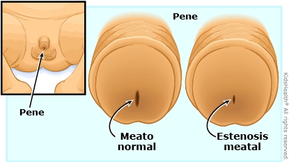 El meato urinario es la abertura que hay en el pene de un niño por donde sale la orina (o pis) hacia el exterior. En la estenosis del meato urinario, el meato es demasiado pequeño.