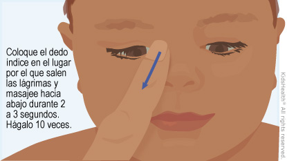 Un conducto lagrimal obstruido (bloqueado) generalmente mejora cuando el bebé cumple 1 año de vida. Masajear el área del conducto lagrimal puede ayudar a abrir el conducto lagrimal bloqueado.