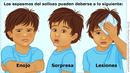 Los espasmos del sollozo ocurren cuando un bebé aguanta la respiración, usualmente después de sentir enojo, frustración, sorpresa o dolor. A veces, el niño puede llegar a desmayarse por aguantar la respiración. Presenciar un espasmo del sollozo puede causar temor, pero el espasmo es inofensivo. Los niños dejan de sufrirlos cuando tienen aproximadamente 8 años (y en muchos casos los superan antes). Esto es lo que debe hacer si su hijo tiene un espasmo del sollozo.