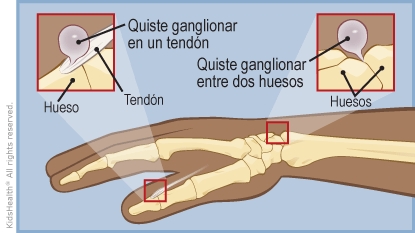 Un quiste ganglionar es una inflamación llena de líquido que se forma en un tendón o una articulación. La mayoría de ellos no causan ningún problema y muchos desaparecen por sí solos en aproximadamente un año. Si un quiste ganglionar le causa dolor o problemas para moverse a su hijo, es probable que el profesional del cuidado de la salud recomiende drenar el líquido del quiste con una aguja o hacer una cirugía para extirparlo.