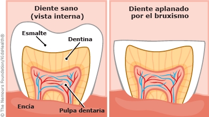 ¿Cómo se trata el bruxismo? La mayoría de los niños dejan de rechinar los dientes a medida que crecen y, con frecuencia, no es necesario ningún tratamiento. Cuando es necesario un tratamiento, este dependerá de la causa del bruxismo. Si se debe a una infección en un oído, el profesional del cuidado de la salud la tratará. Si el bruxismo se relaciona con el estrés o la ansiedad, pueden ser útiles las técnicas de relajación. A veces, se recomienda el uso de un protector bucal. Estos protectores son de plástico y el niño lo llevará puesto sobre los dientes por la noche para evitar que rechine los dientes mientras duerme.
