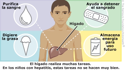 La hepatitis B ocurre cuando el hígado se infecta con el virus de la hepatitis B y tal vez deje de funcionar como debiera. El hígado es un órgano que está ubicado en la parte superior derecha del abdomen y tiene varias funciones; por ejemplo, descomponer los alimentos que contienen grasas, almacenar energía, eliminar las toxinas de la sangre y producir proteínas que ayudan a coagular la sangre.