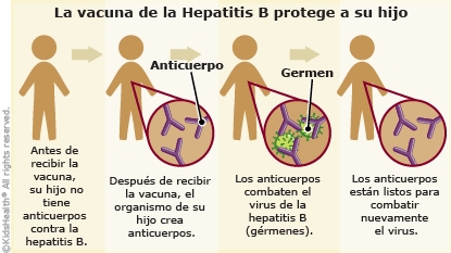 La vacuna contra la hepatitis B se elabora a partir de gérmenes de la hepatitis fraccionados. Después de que un niño recibe la vacuna, su cuerpo produce anticuerpos (proteínas que combaten los gérmenes) contra los gérmenes. Si tienen contacto con el virus de la hepatitis B (VHB), los anticuerpos combaten el virus y ayudan a eliminarlo antes de que el niño se sienta enfermo o el virus cause algún problema. Esta protección suele durar hasta la edad adulta.