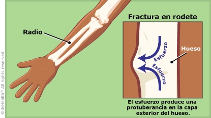 ¿Por qué los niños sufren fracturas en rodete? Los huesos de los niños todavía están creciendo y no son tan duros como los de los adultos. Cuando los niños estiran los brazos para detener una caída, la presión que recibe el hueso produce una protuberancia en la capa externa.
