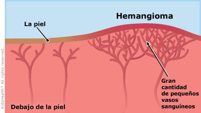 Un hemangioma infantil es un tipo de mancha de nacimiento. Está conformado por pequeños vasos sanguíneos y suele ser rojo o morado. El aspecto de los hemangiomas puede variar de una persona a otra. Pueden ser planos o sobresalir, pequeños o grandes, lisos o rugosos. La mayoría de los hemangiomas infantiles se encuentran en la piel, pero también pueden estar dentro del cuerpo. Suelen desaparecer sin tratamiento, pero es probable que sea necesario tratar a algunos de ellos.