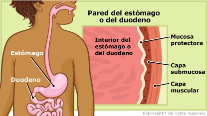 Una úlcera de estómago es una llaga en la capa submucosa del estómago. Una úlcera de duodeno es una llaga en la capa submucosa del duodeno. El duodeno es la parte del intestino delgado que está conectada al estómago.