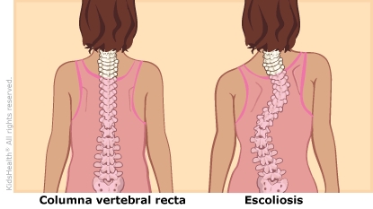 Cuando un niño tiene escoliosis, la columna vertebral se curva en forma de "S" o de "C", en lugar de ser una línea recta vertical.